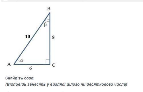 Косинус угла- это отношение прилежащего катета к гипотенузе.