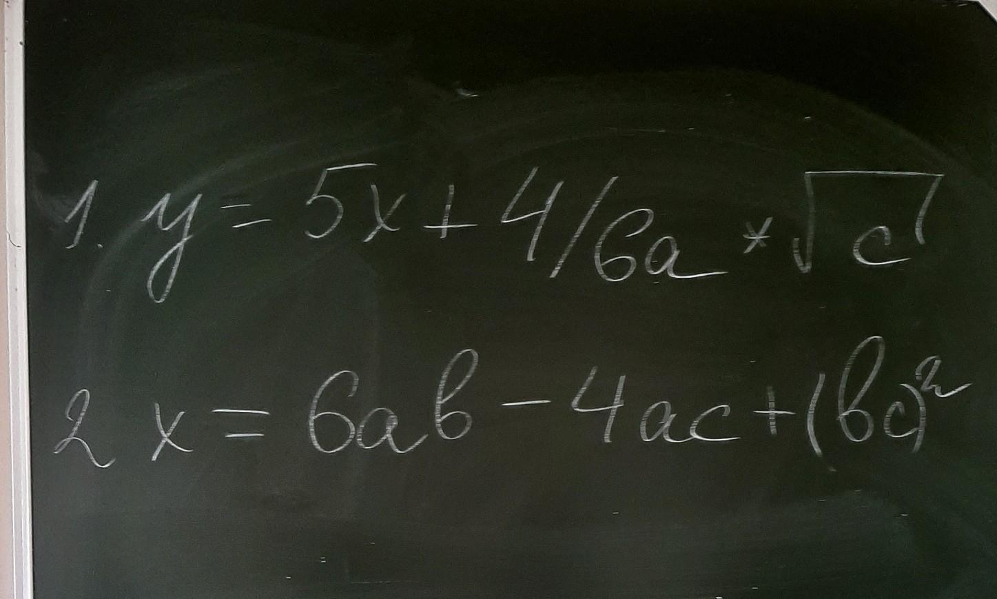 writeln('Введите значения "x, c, a" для выражения "y = 5x + (4 / 6a) * sqrt(c)');