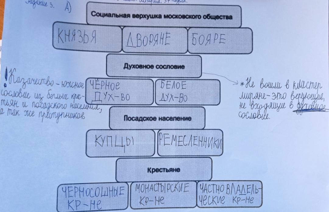 А) Заполните кластер. Какое сословие не указано в данной схеме?