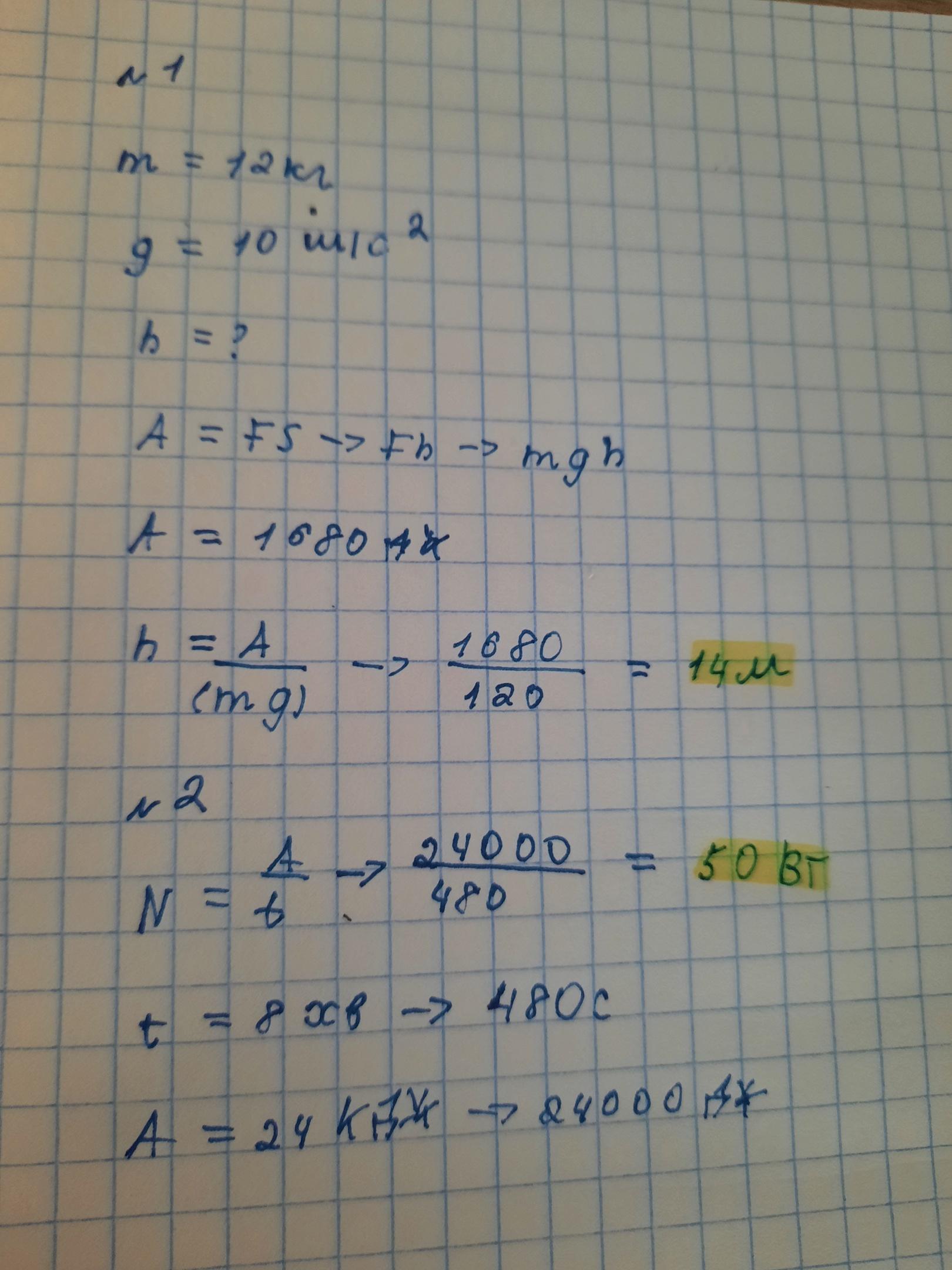 1. Витягуючи з колодязя відро, масою 12 кг людина виконує роботу 1680 Дж. Яка глибина колодязя?2.Яка потужність двигуна, якщо за 8 хв він виконав роботу 24 кДж?