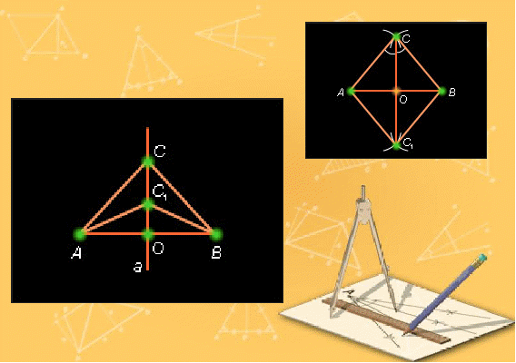 Пусть [AB] – данный отрезок, точка O – его середина, прямая a – серединный перпендикуляр к отрезку AB. Выберем произвольную точку C на прямой a, отличную от точки O. В треугольнике ACB CO – одновременно медиана и высота. Следовательно, треугольник ACB равнобедренный, иAC = BC. Отсюда возникает следующий способ построения точки O – середины отрезка AB.