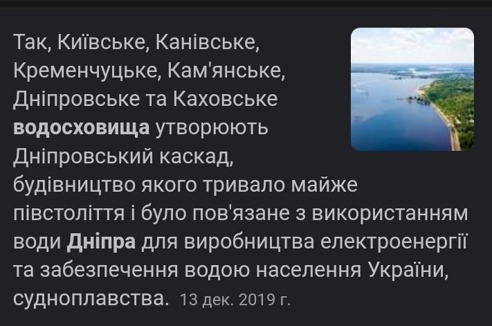 4. Назвіть водосховища Дніпра.