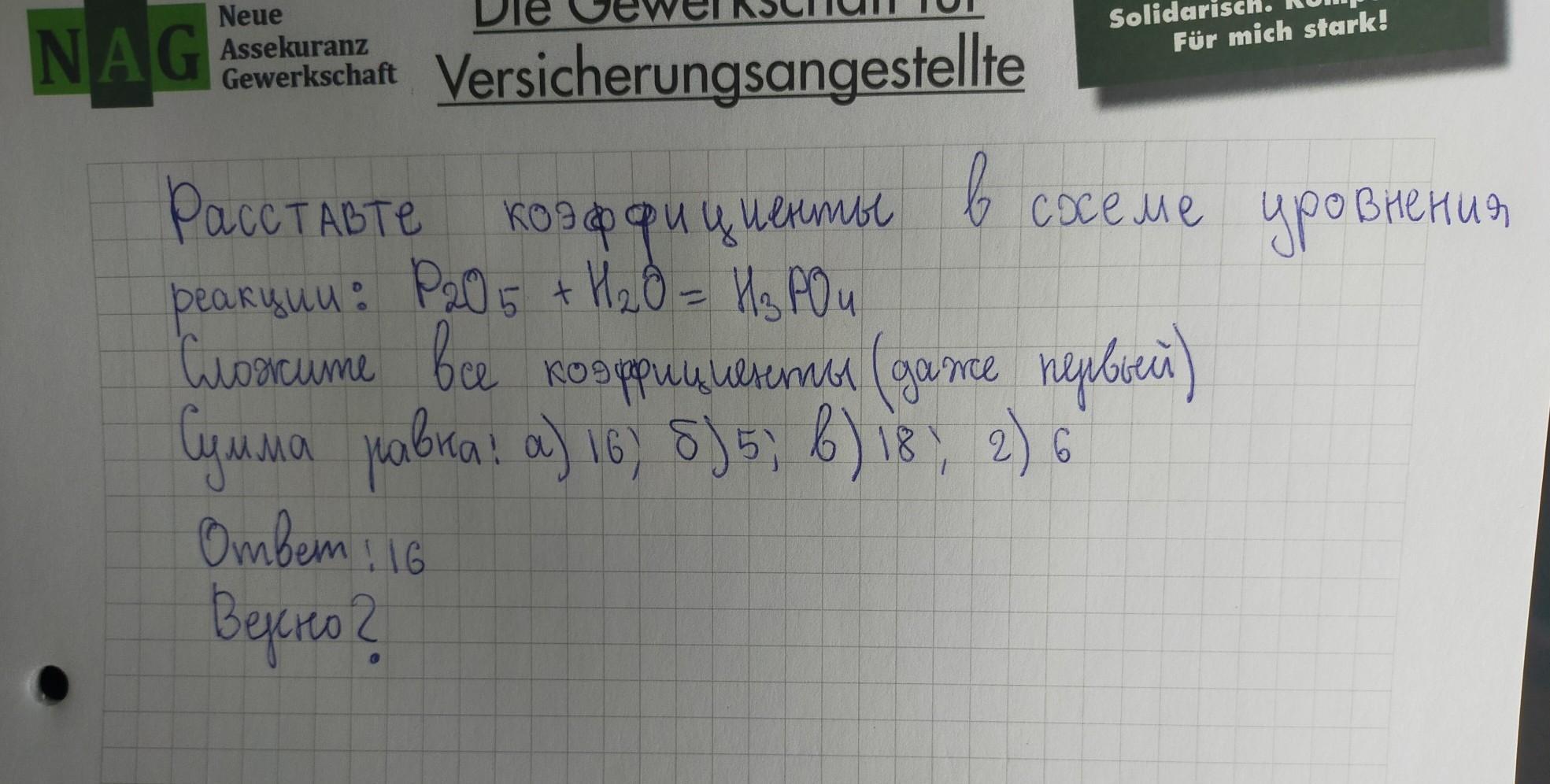 Нет, сумма коэффициентов равна 6, т.к. 1 перед P2O5 тоже надо учитывать