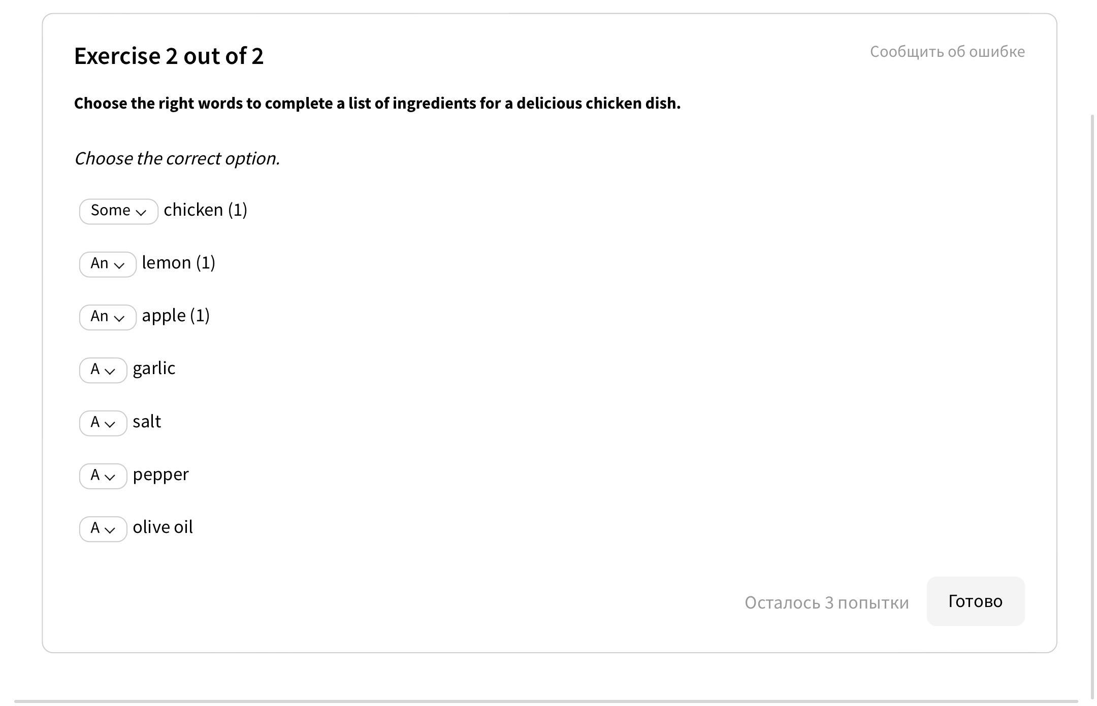 Не правильно An olive oil и a garlic