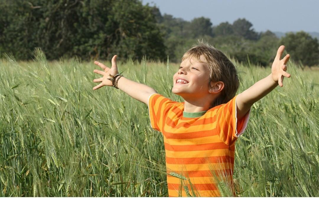 На этой картине мы видим мальчик. Мальчику на вид 7-8 лет. Одет он в оранжевую футболку. Он находиться в поле и получает удовольствие от провождения там. Поле вокруг больше, вдали виден лес . Вокруг отличная погода!