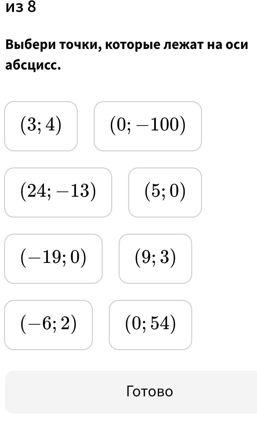 Если точка лежит на оси абсцисс (х), то ордината (у) равна 0.