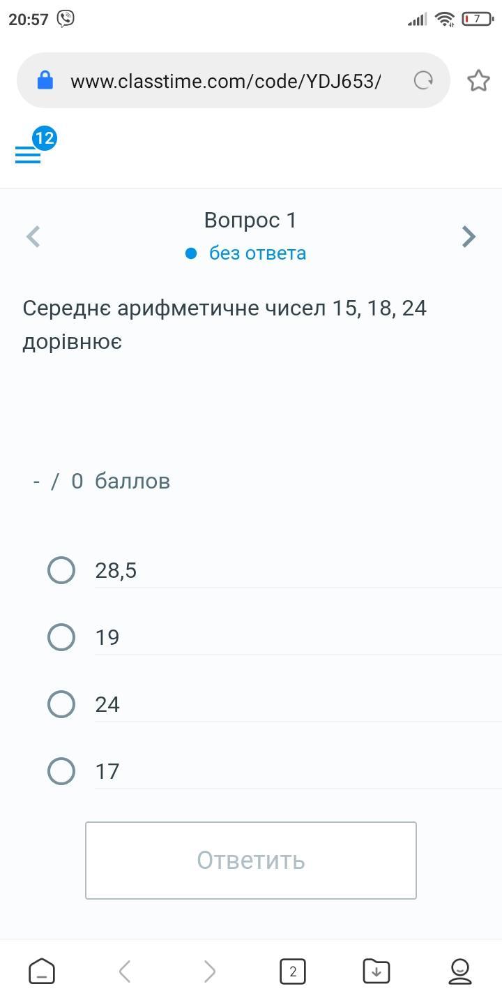 Відповідь: 1)19