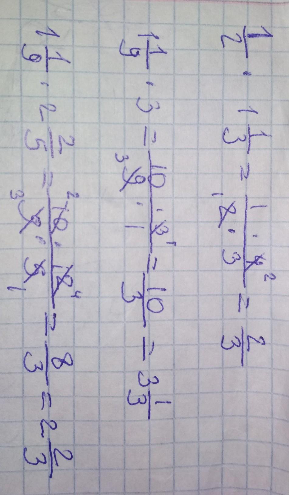1) 1/2 * 1. 1/3 = 1/2 * 4/3 = 4/6 = 2/3