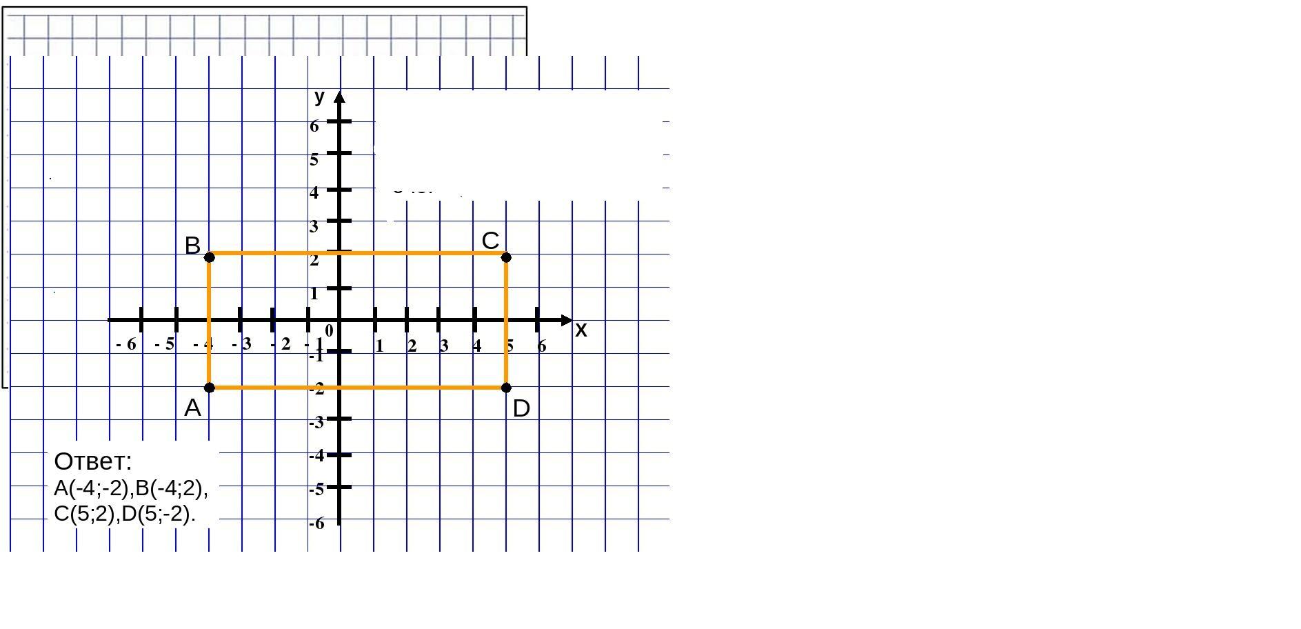 Накреслити прямокутну систему координат, позначити точки і послідовно їх сполучити