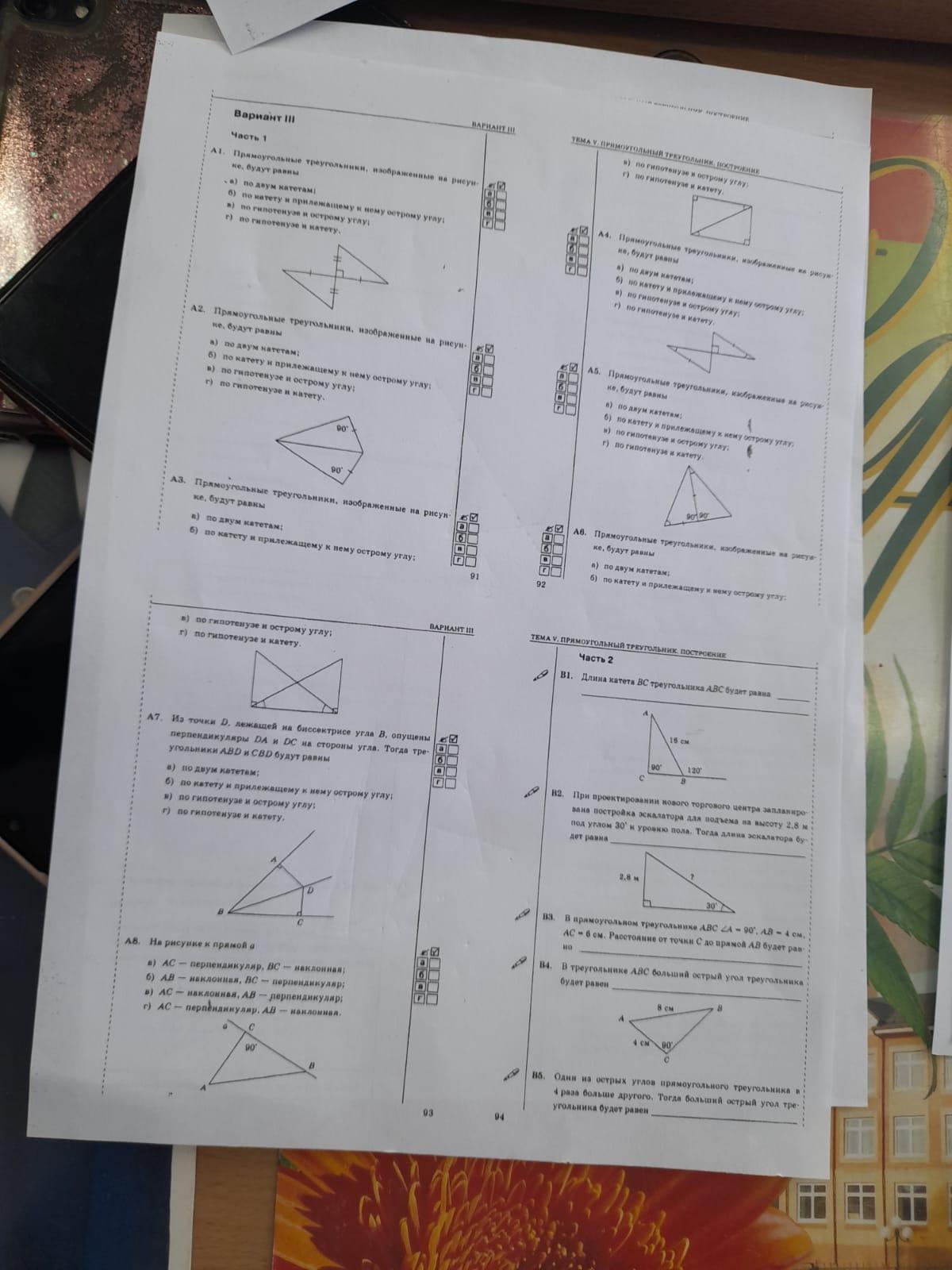 Точно не могу сказать но скорее всего "Равенство треугольников","Признаки равенства треугольников","Прямоугольные треугольники" - что-то из этого