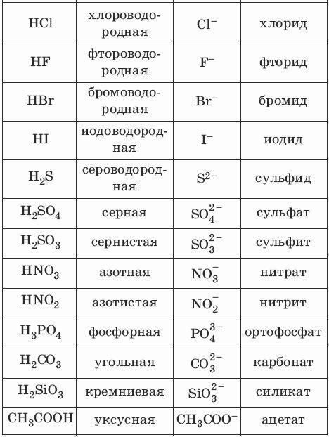 Кислота: серная кислота, бромоводородная кислота, ортофосфорная кислота, сероводород