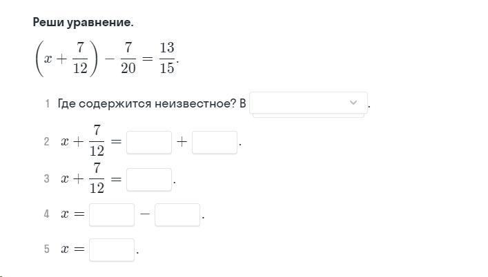 (х+7\12)= 13\15 + 7\20 (тут потрібно 1 дріб помножити на 4, а 2 дріб на 3 тому, що спільний знаменник-60)