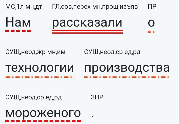 Сделайте синтаксический разбор предложения: Нам рассказали о технологии производства мороженого. Пожалуйста!)