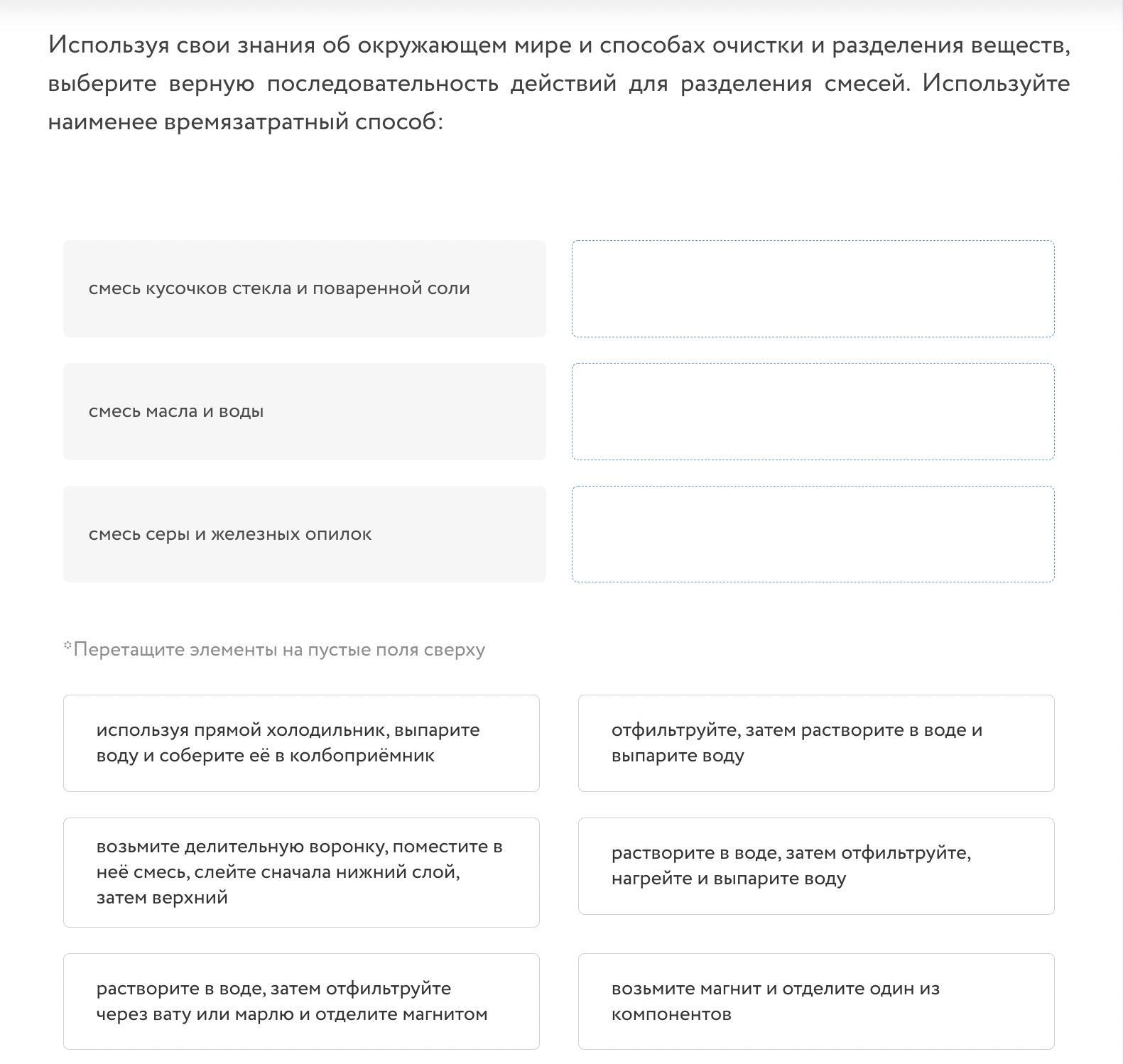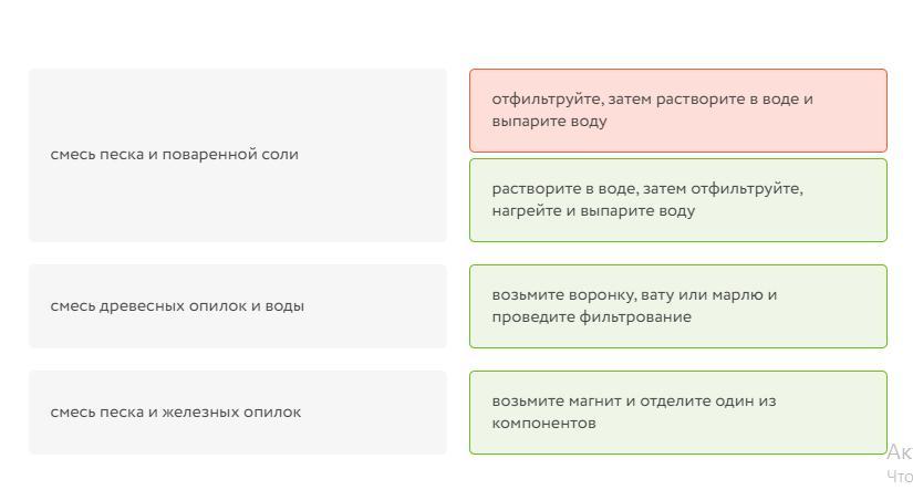 20 баллов!!! Используя свои знания об окружающем мире и способах очистки и разделения веществ, выберите верную последовательность действий для разделения смесей. Используйте наименее времязатратный способ: