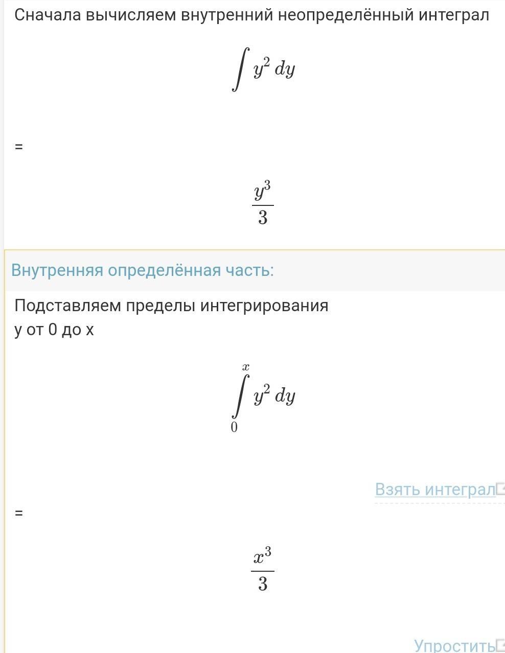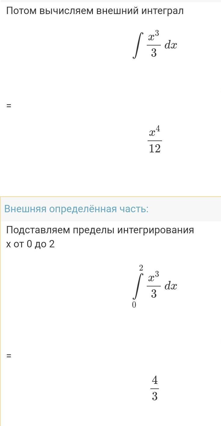 Сначала вычисляем внутренний интеграл, затем внешний .