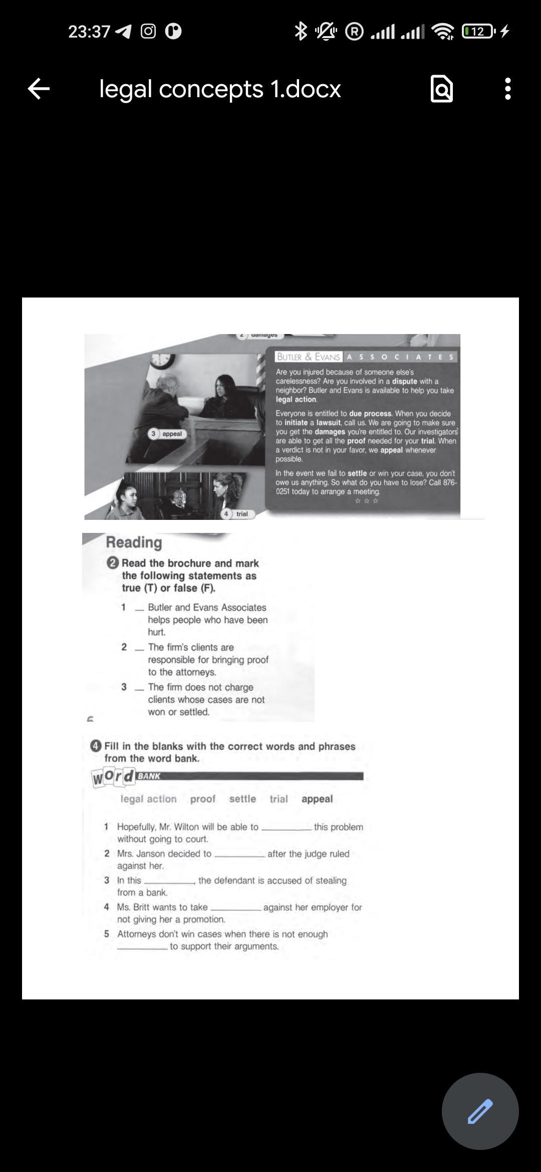 1. settle 2. appeal 3. trial 4. legal action 5. proof