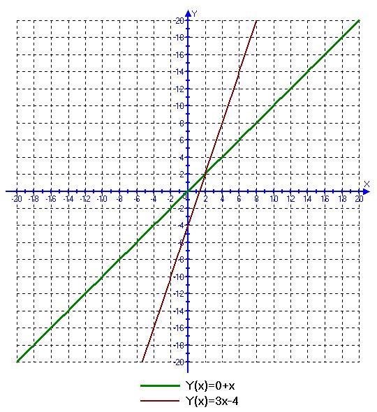 Строим график одного уравнения и график второго. Точка пересечения графиков и будет решением уравнения. На скриншоте видно что точка пересечения имеет координаты x=2; y=2 Это и есть значения переменных x и y.