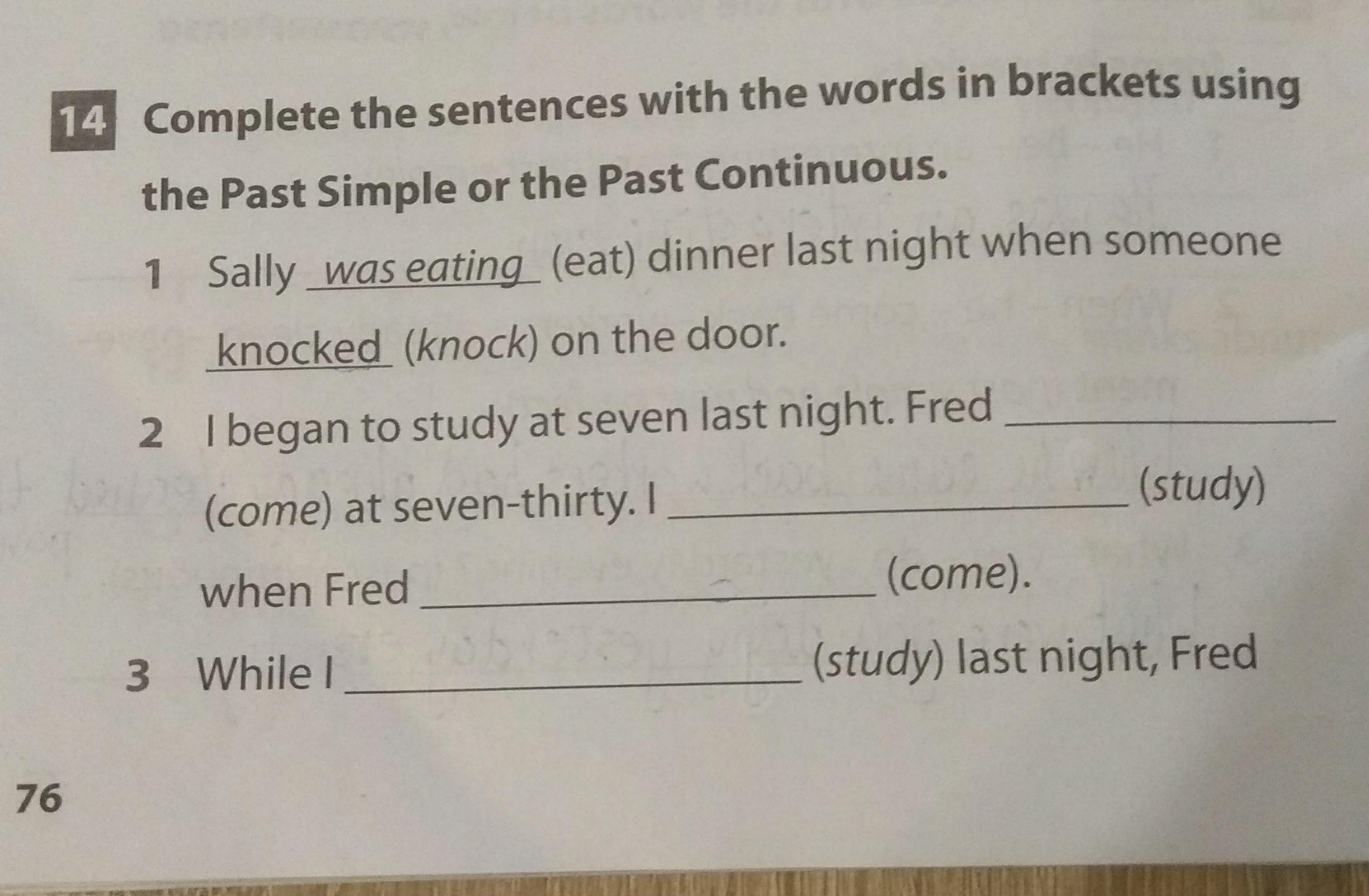 2. I began to study at seven last night. Fred came at seven thirty. I was studying when Fred came.