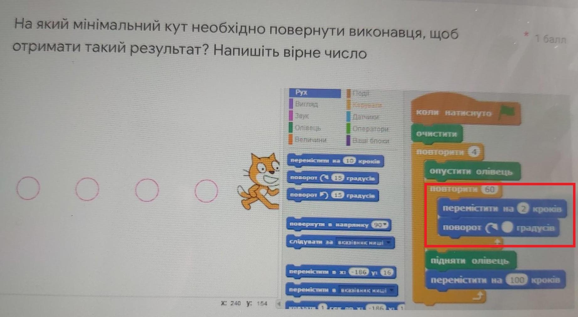 чтобы выполнить поворот на 360° за 60 раз, надо каждый повтор цикла поворачиваться на 6° (360 / 60 = 6)