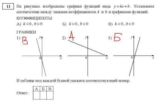 Коэффициент b отвечает за то, где прямая пересекает ось Y, если b<0, то прямая пересекает ось Y ниже 0 или ниже оси Х, если b>0, то прямая пересекает ось Y выше 0, т.е. выше оси Х.
