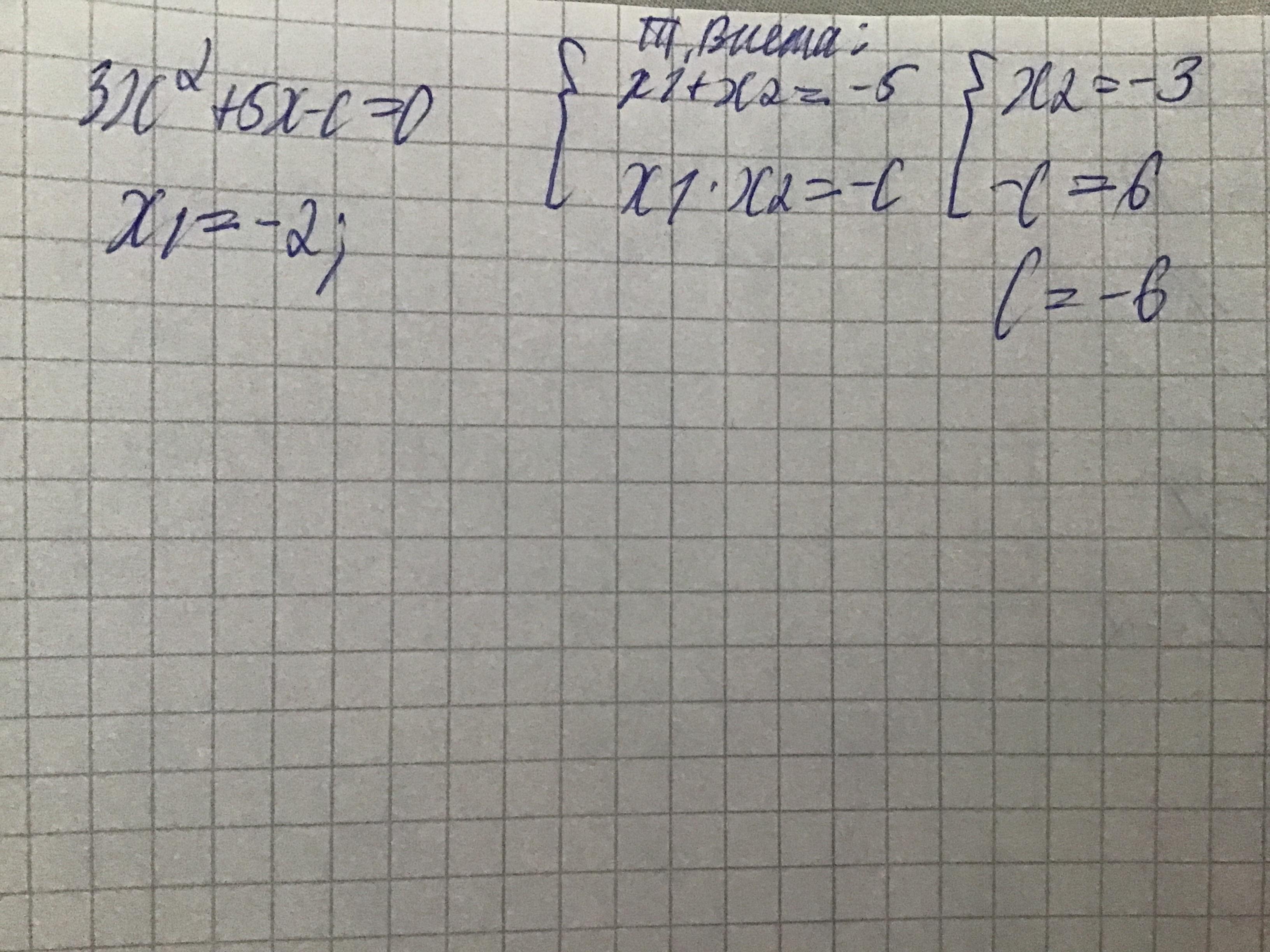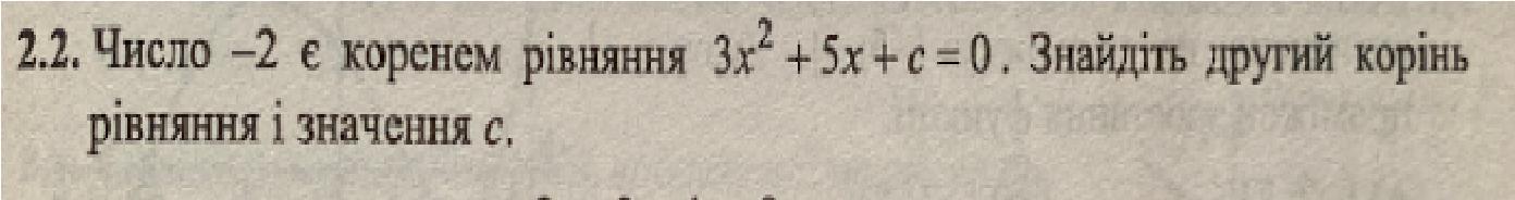 Число -2 є коренем рівняння 3x^2+5x+c=0. Знайдіть другий корінь рівняння і значення c.