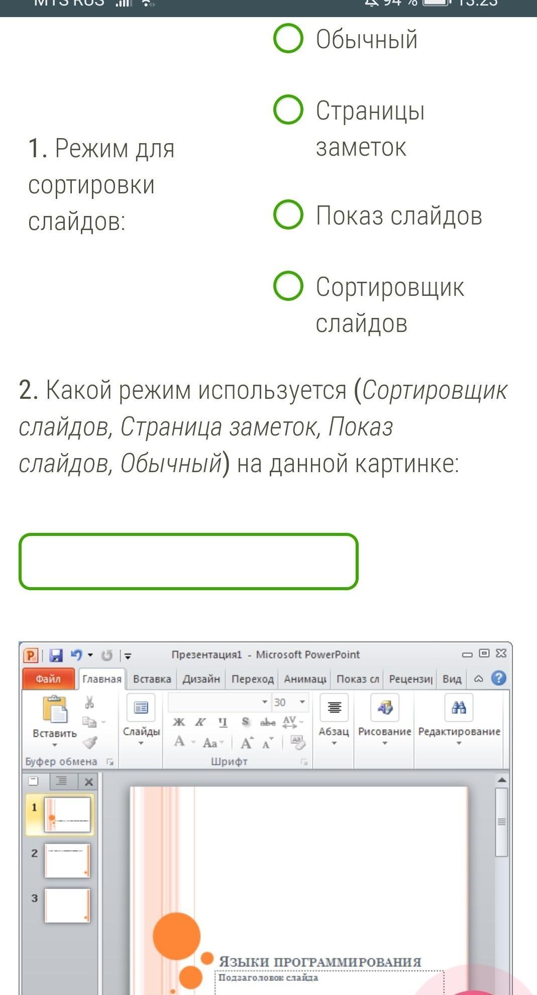 1) показ слайдов