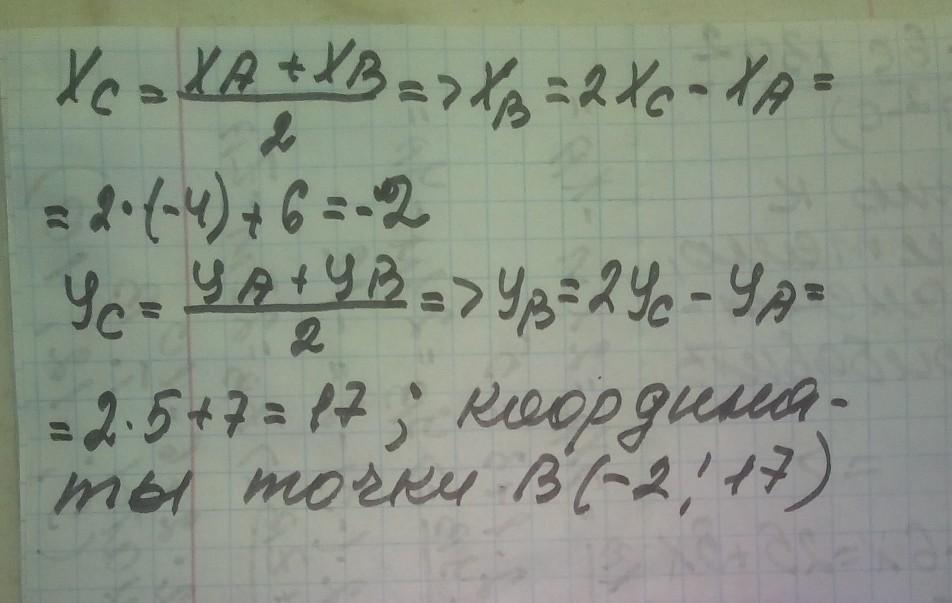 Точка С середина отрезка АВ. Найдите координаты точки В, если С(-4;5) и А(-6;-7)