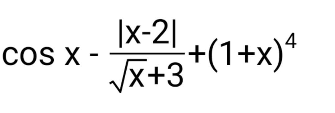 y := cosx - (Abs(x - 2) / (Sqrt(x) + 3)) + exp(Ln(1 + x) * 4);