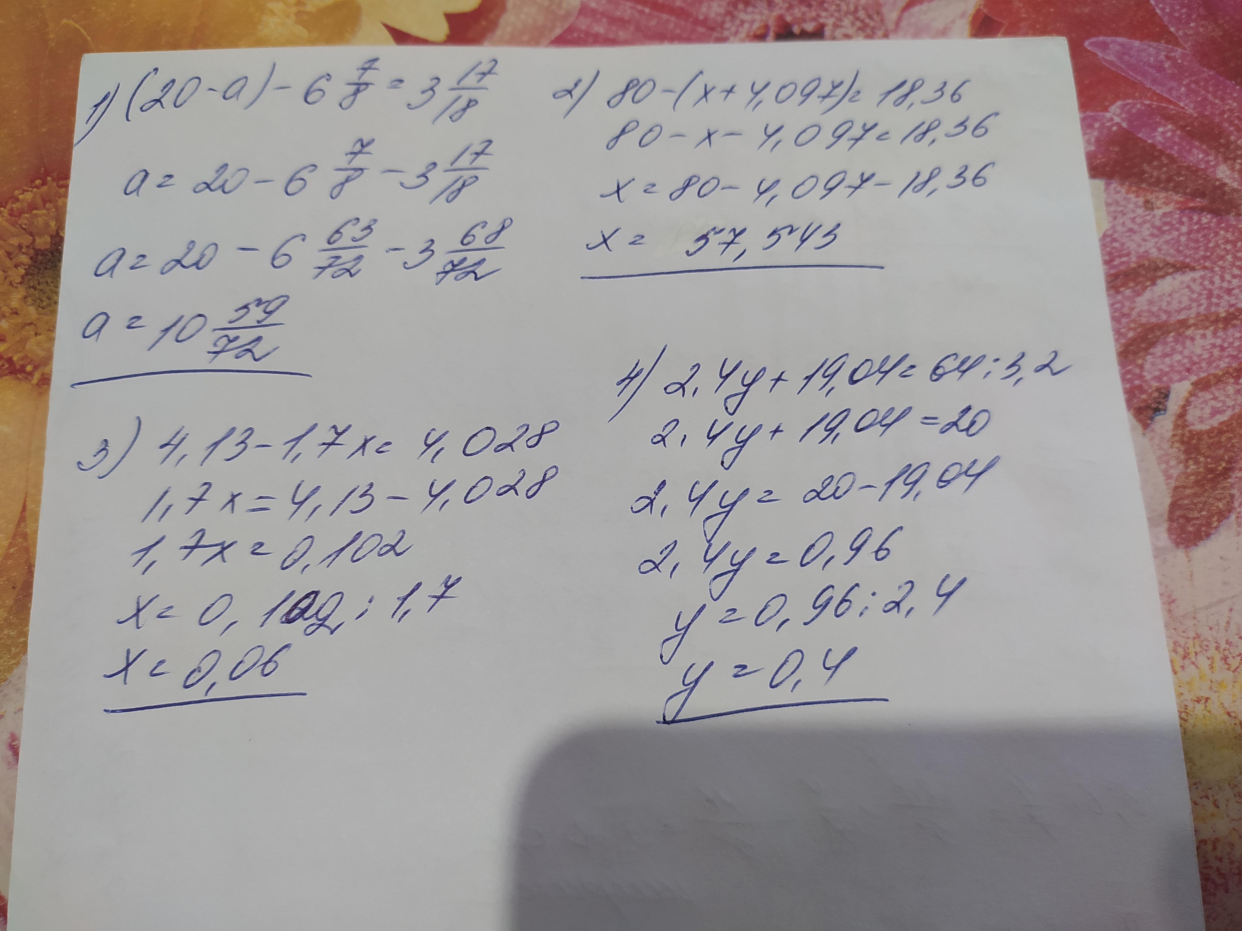 (20-а)-6сім восьмих= 3сімнадцять вісімнадцятих. Завдання 2) 80-(x+4,097)=18,36.