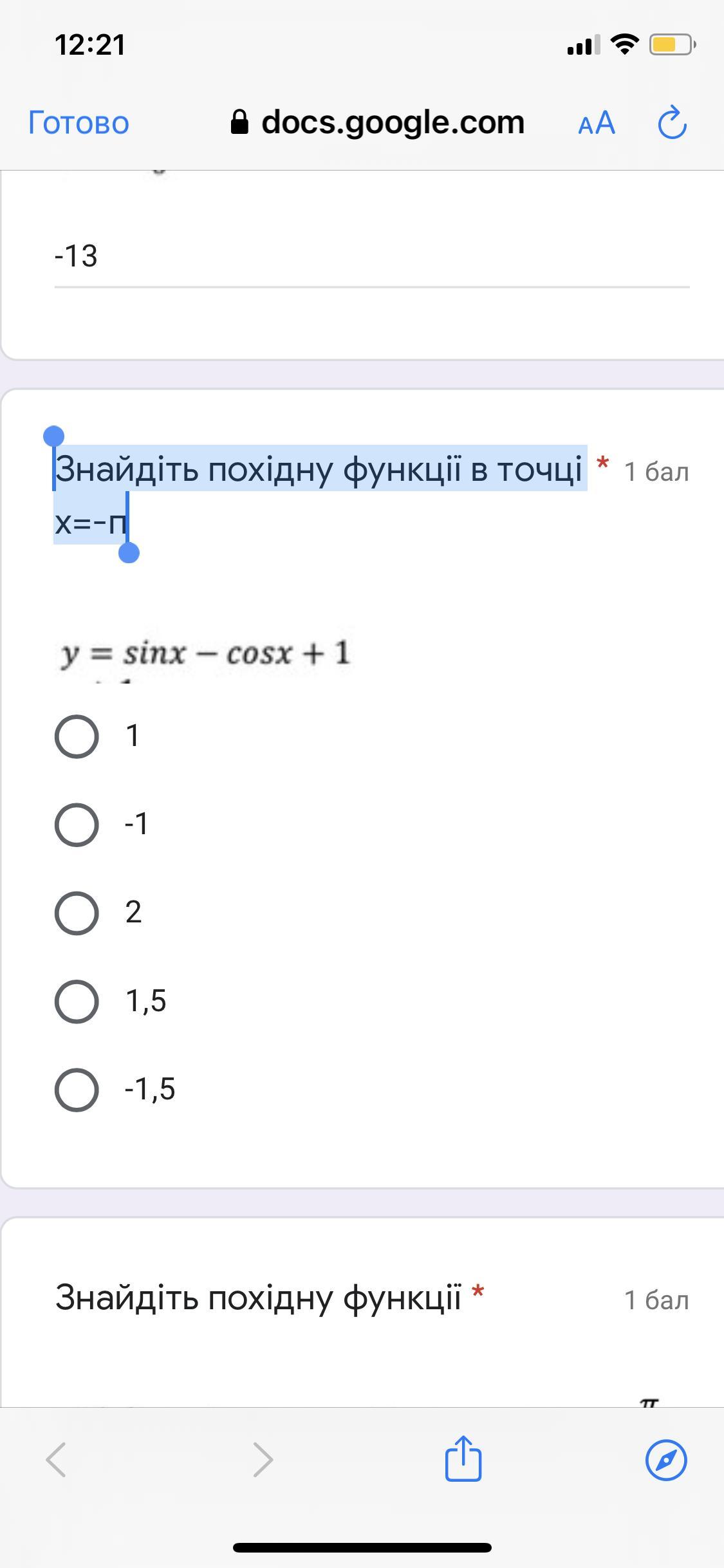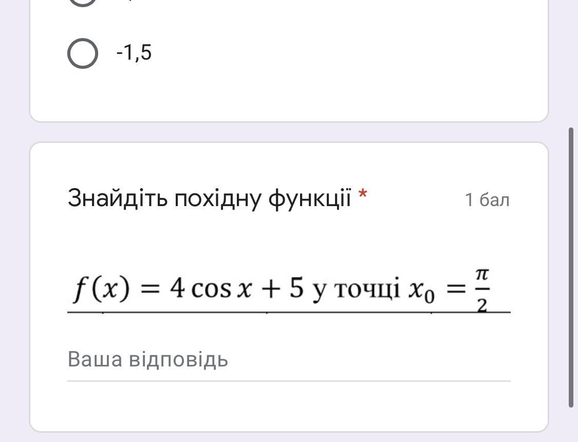 Відповідь:1)f'(x)= -4sin(x)+0f'(x0)=-4sin(π/2)= -4*1= -4