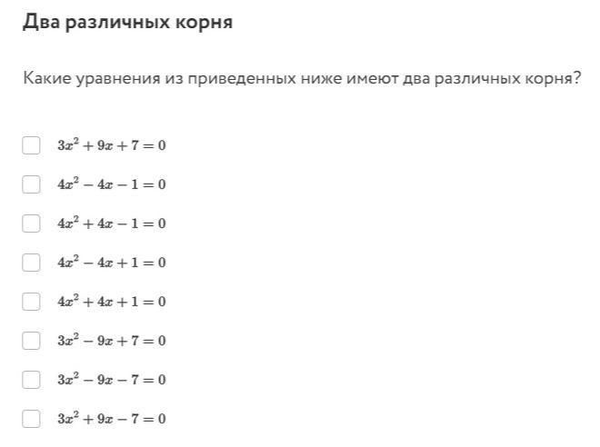 Уравнение имеет два различных корня, если Дискиминант больше нуля