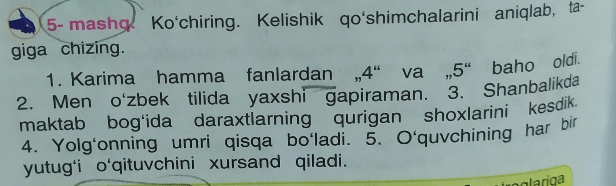 1.Karima hamma fanlardan 4" va 5" baho oldi.