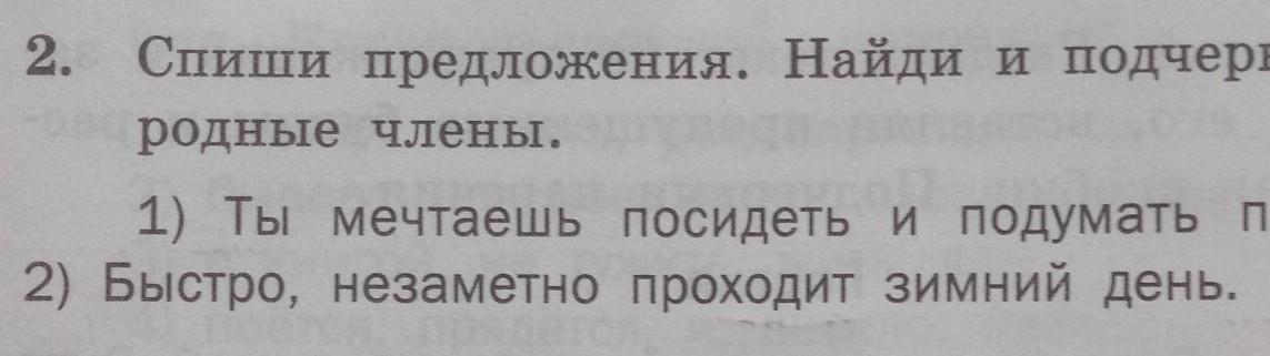 родные члены. 1) Ты мечтаешь посидеть и подумать под дубом. 2) Быстро, незаметно проходит зимний день.