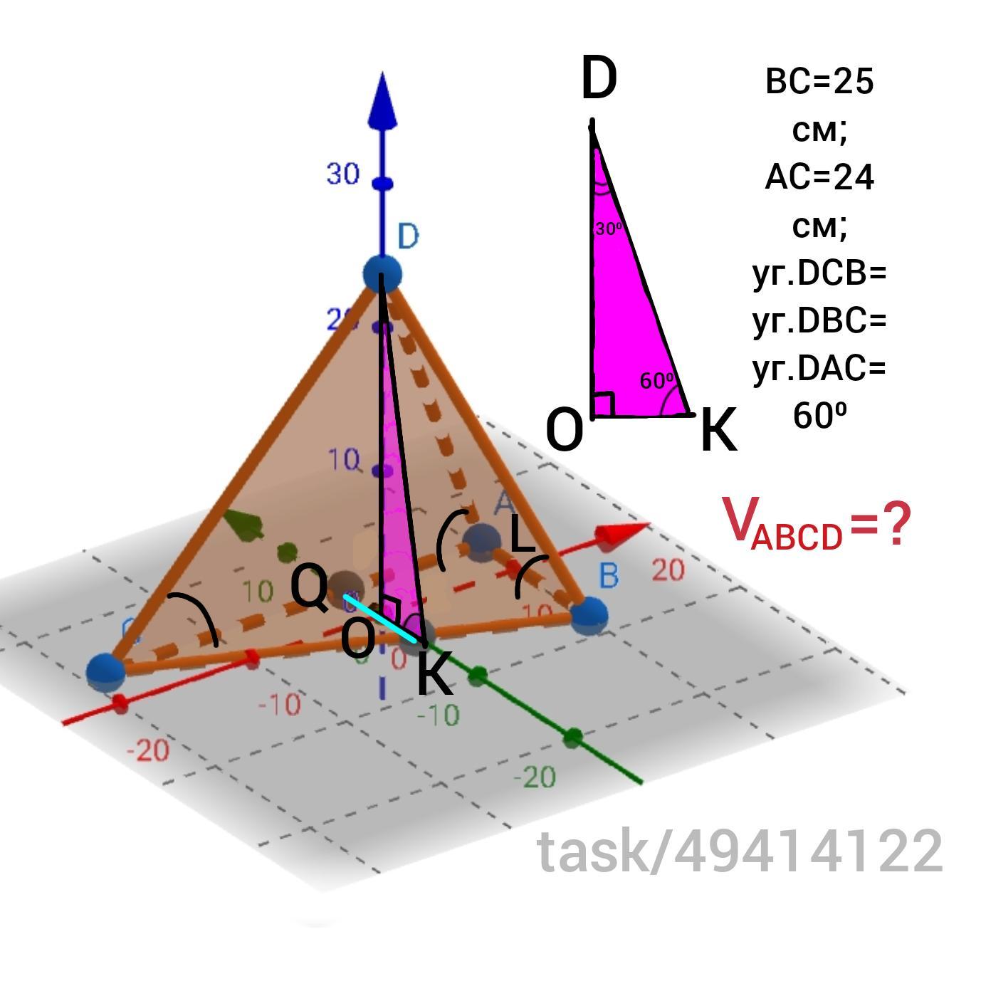 - найдем высоту пирамиды, выделив