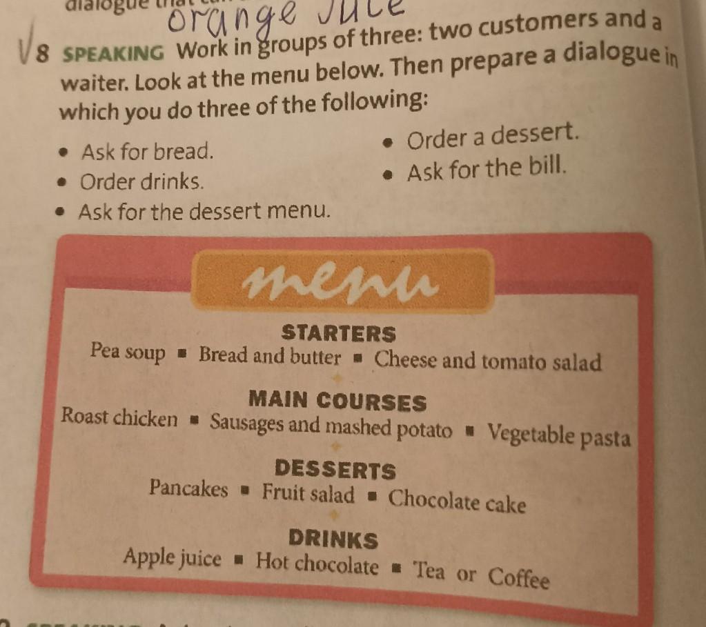 8 задание сделать диалог 7- 8по предложений по меню и за планом