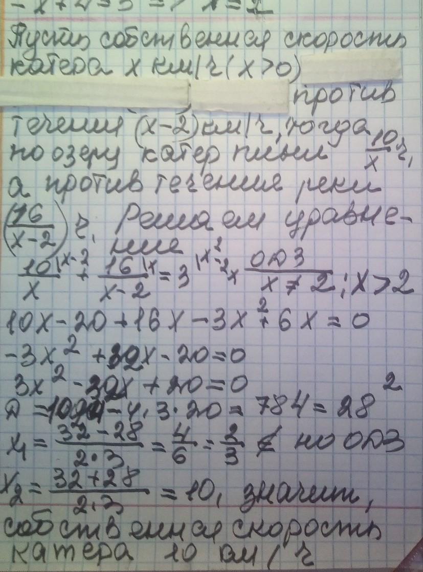 катер проходить 10 км по озеру та 16 км проти проти течії річки за 3 год. знайди власну швидкість катера якщо швидкість течії 2 км/год поэалуйста с полним ответом