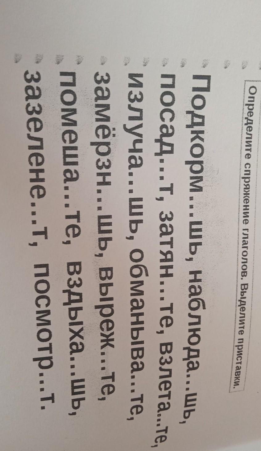 Подкормишь (2-е спряжение), наблюдаешь (1-е спряжение), посадят (2-е спряжение), затяните (2-е спряжение), излучаешь (1-е спряжение), обмазываете (1-е спряжение), замёрзнешь (1-е спряжение), вырежете (1-е спряжение), помешаете (1-е спряжение), вздыхаешь (1-е спряжение), зазеленеете (1-е спряжение), посмотрит (2-е спряжение, слово-исключение)