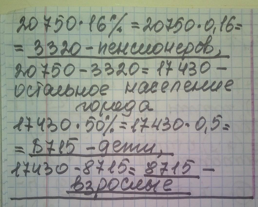 Пенсионеры - 16% от 20750 жителей, то есть это составляет