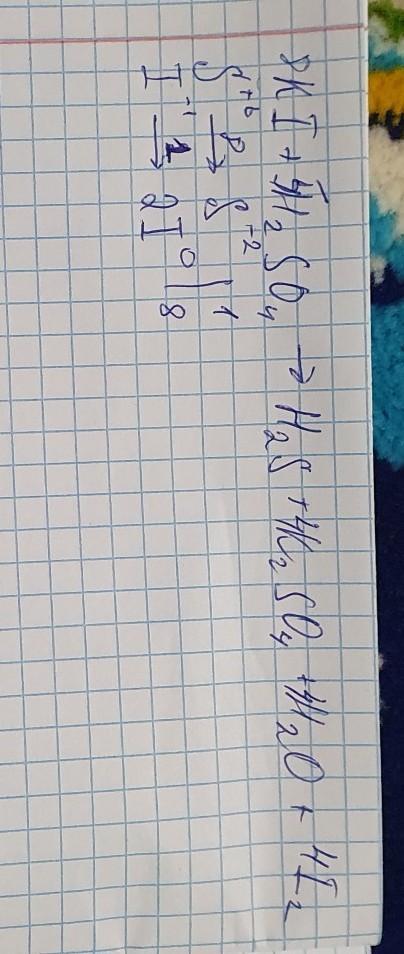 реакция ОВР. используя метод электронного баланса расставьте коэффициенты в уравнении реакции схема которой KJ+H2SO4->J2+H2S+K2SO4+H2O