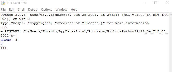 Напиши программу которая спрашивает у человека число, после чего выводит в консоль это число в квадрате.