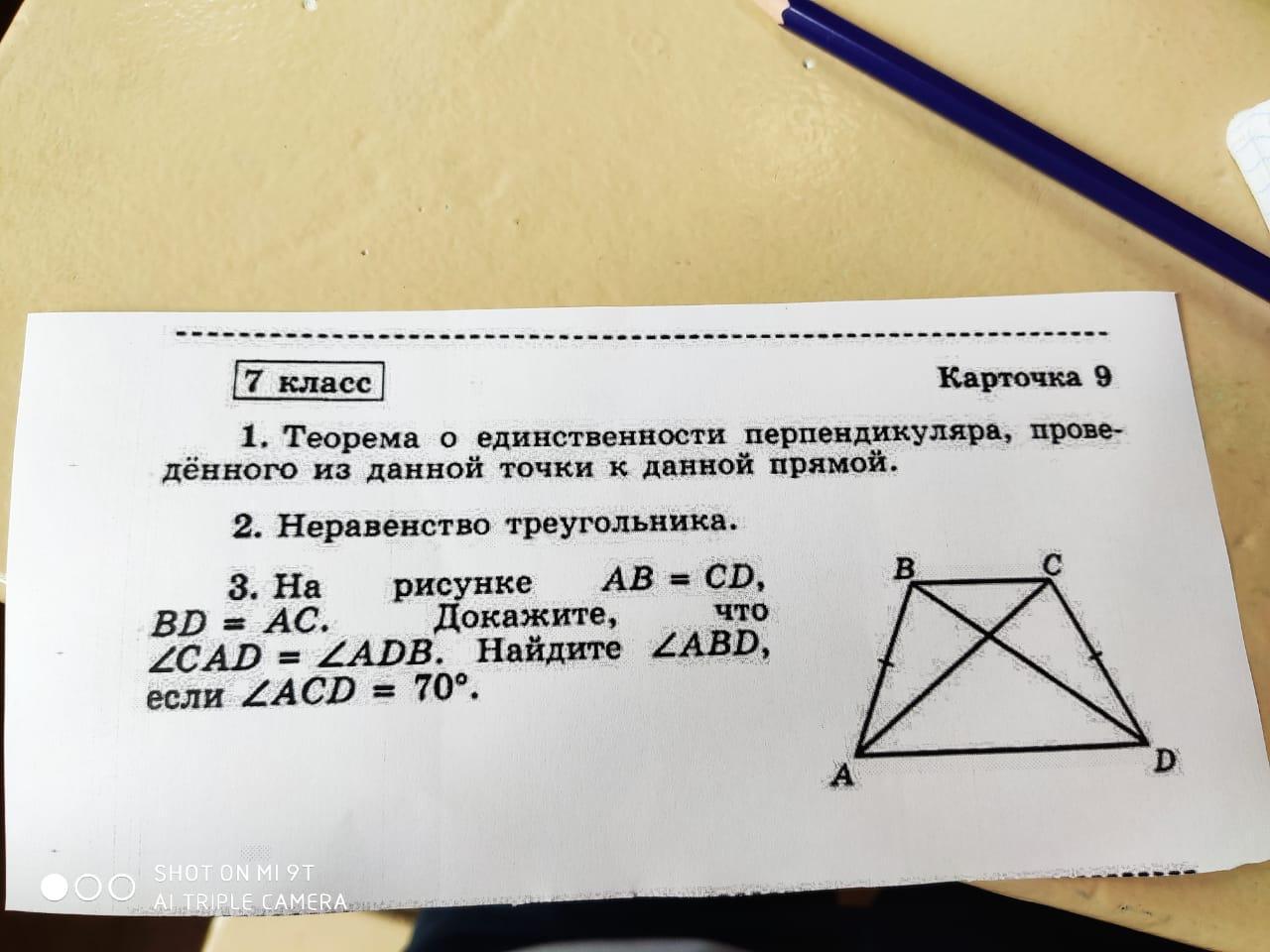 треуг. САD=АDB, по 3 признаку р-на треугольников, т.к. по условию АВ=СD, ВD=АС, а АD - общая сторона.