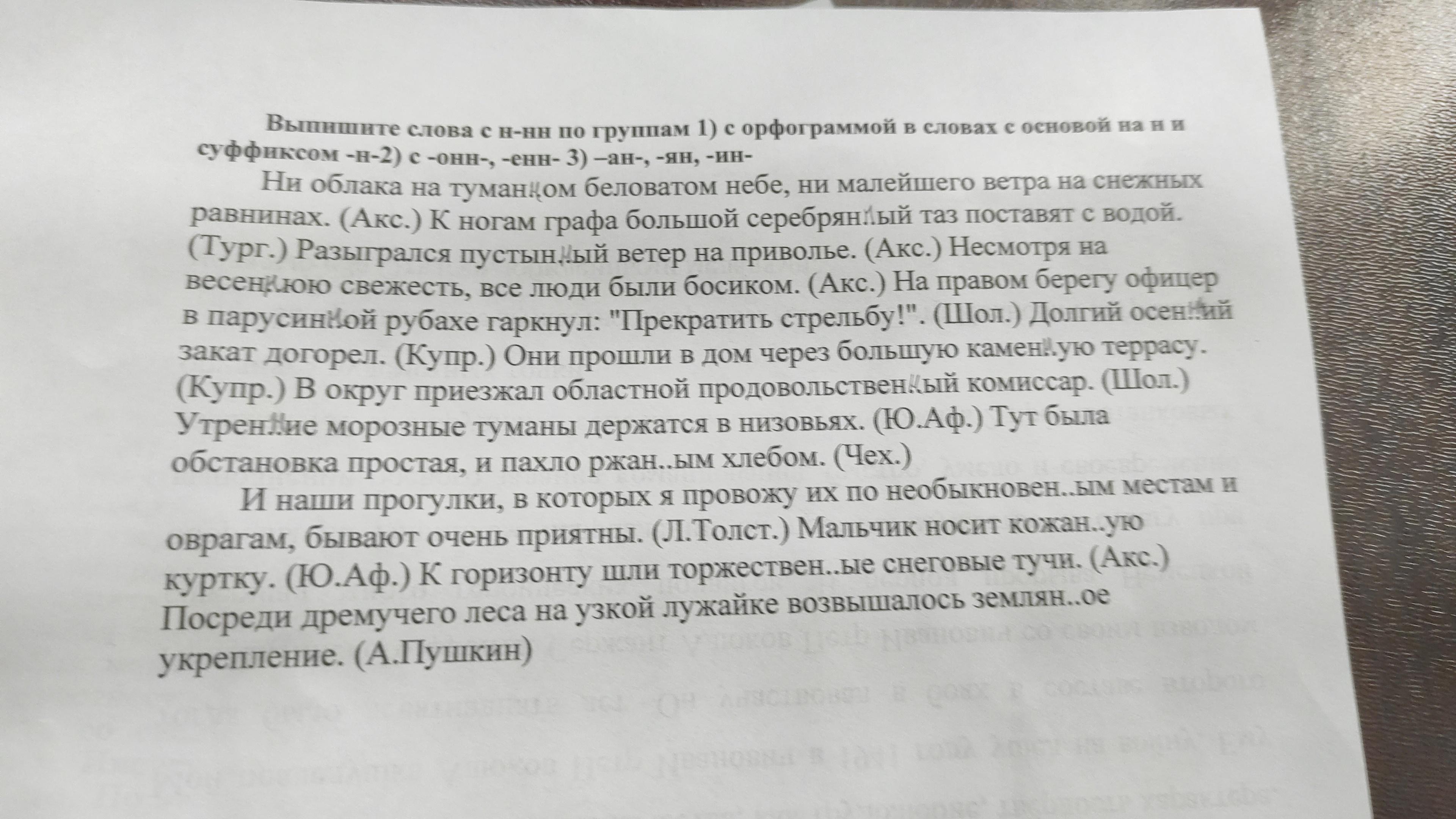 1) туманНом, пустынНый, весенНюю, осенНий,