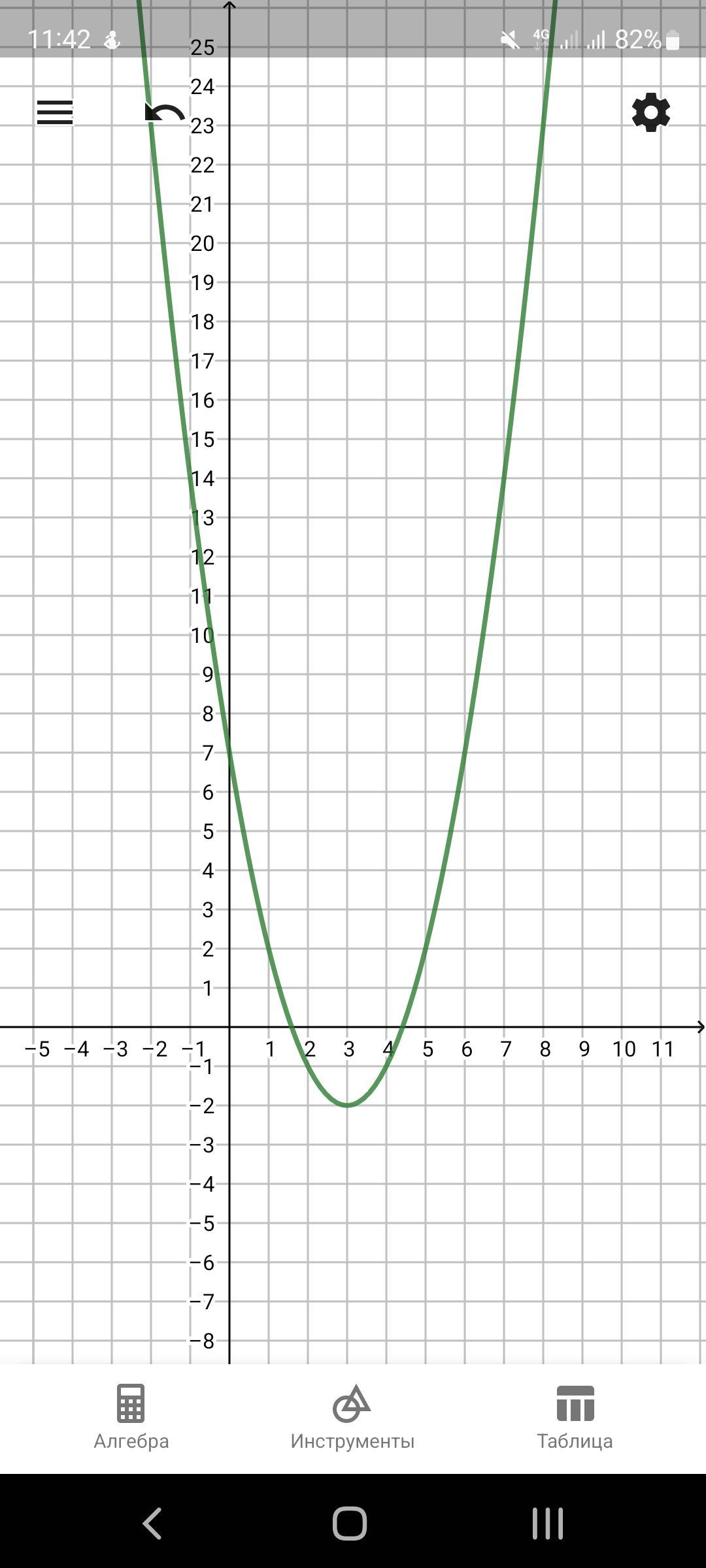 График построил в геогебре, не буду углубляться в вычисление координат 5-7 точек. Но лучше взять x=0;x=1;x=2;x=3;x=4;x=5;x=6