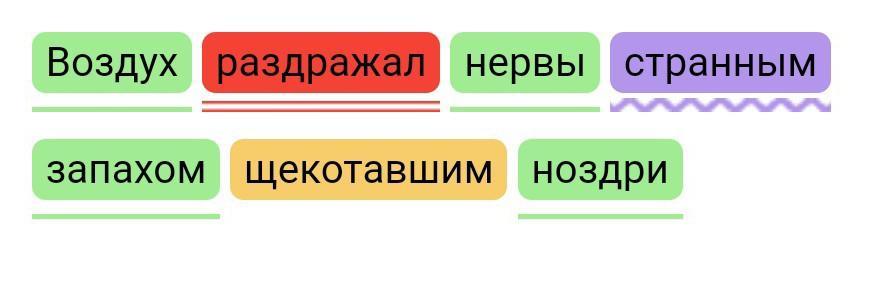 предложение : Воздух раздражал нервы странным запахом щекотавшим ноздри.