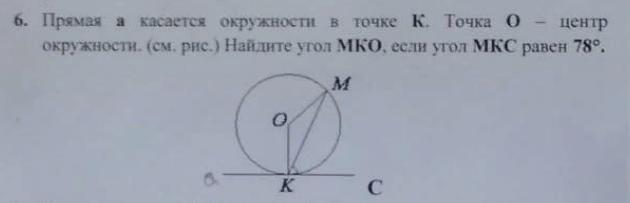 ОК - радиус окружности и в точке К с касательной а образует ∡ОКС=90°.