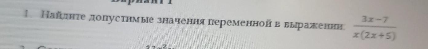 Вариант 1 1. Найдите допустимые значения переменной в выражении. 3x-7/х(2x+5) срочно пожалуйста