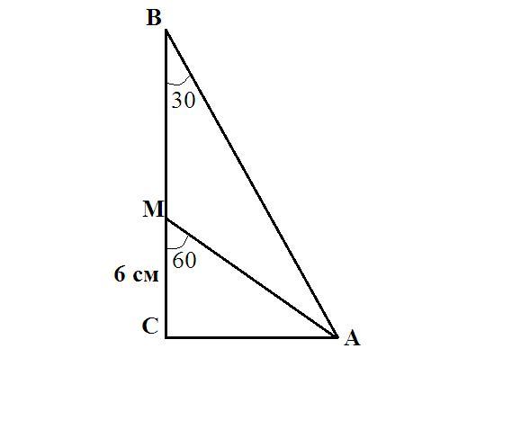 В треугольнике АВС известно, что ∠С=90°, ∠В=30° . На катете ВС отметили точку М такую, что ∠АМС=60°.