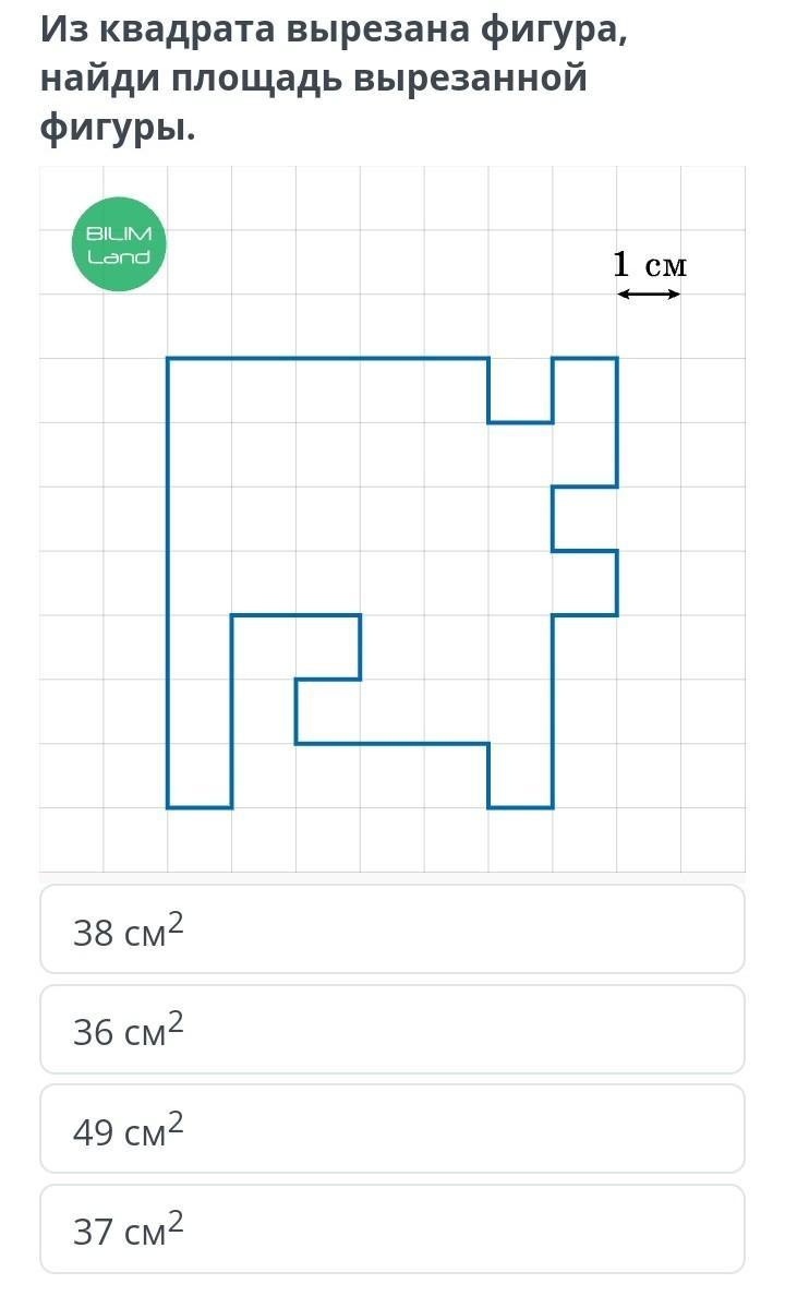 37 см квадратных просто посчитай квадратики внутри