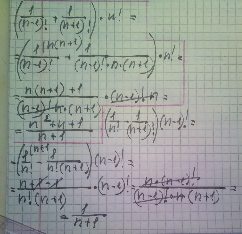 б ) ( 1/n ! - 1/( n + 1 )! ) *( n - 1 )! = ( n - 1 ) !/n ! - ( n - 1 ) !/( n + 1 )! =
