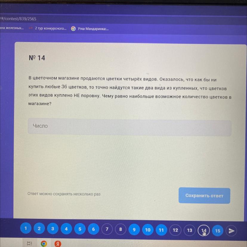 купив 36 цветов, у нас будет два вида, значит максимум одного вида моет быть 35